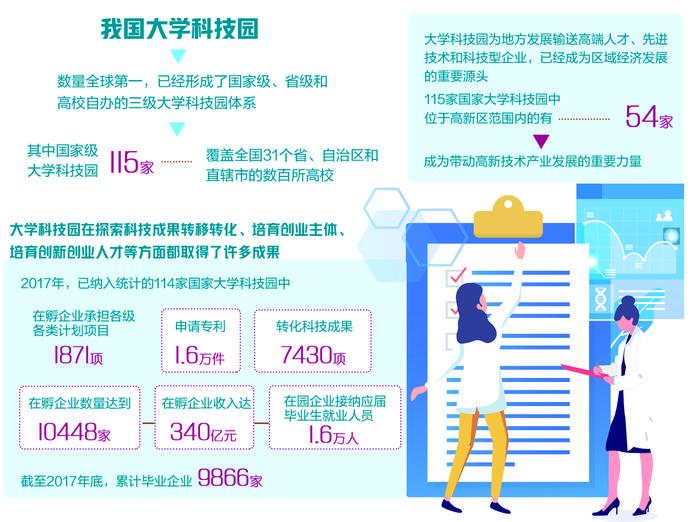 覆盖全国的115家国家大学科技园,是我国科技体制改革创新的重要试验基地。进入新时代,为了深入推进大众创业、万众创新,科技部和教育部近期制定颁发了《关于促进国家大学科技园创新发展的指导意见》(以下简称《指导意见》)和新修订的《国家大学科技园管理办法》(以下简称《管理办法》)。
