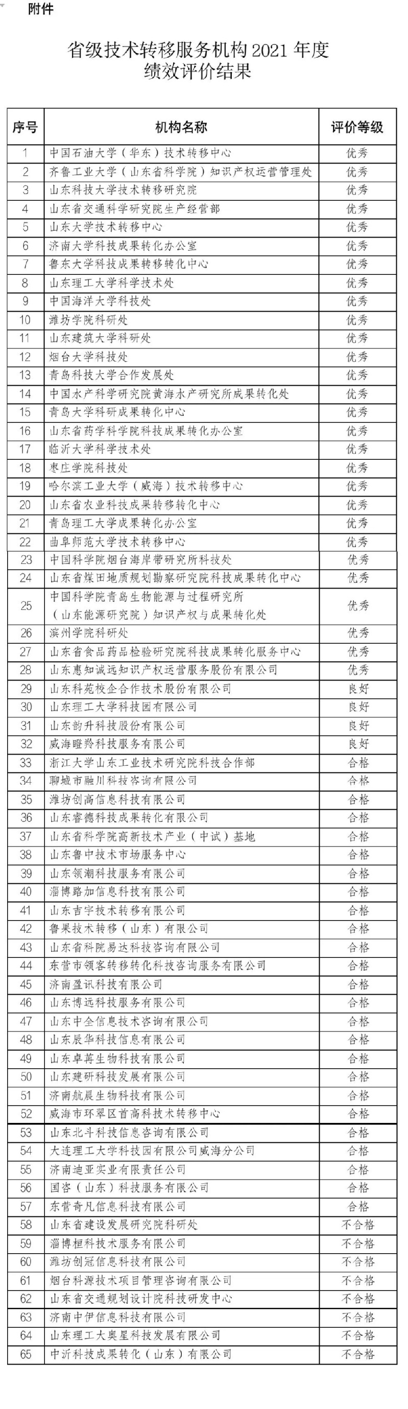 近日,山东省科学技术厅公布省级技术转移服务机构2021年度绩效评价结果,我校技术转移中心在全省65家技术转移服务机构中以绩效评价排名第一的成绩获评优秀等级。