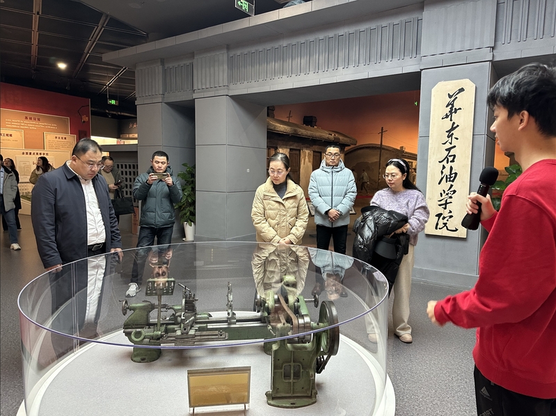 东营市河口区一行参观考察校史馆和石油工业训练中心,了解学校发展历程、人才培养、科研创新、对外交流等情况,以及产学研深度融合、产教一体发展、创新创业孵化等方面的经验做法。