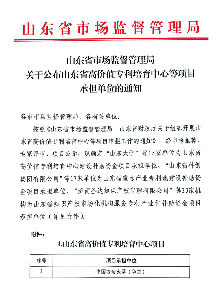 近日,山东省市场监督管理局、山东省财政厅公布山东省高价值专利培育中心等建设项目承担单位名单,学校入选首批山东省高价值专利培育中心建设项目。